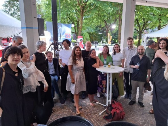 Die Lesung schön, vor allem wegen der Atmosphäre im Raum. Das Publikum hat mitgelesen, der Text war ja verteilt worden davor. Das gemeinsame Umblättern, ein fast synchrones Blätterrauschen, war schon besonders. Auf die Kritik konnte ich mich dann wenig konzentrieren, hab sie später nachgehört.