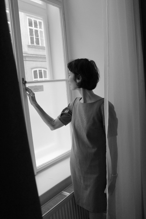 Ino Matsou, Schauspielerin _acting Ingeborg Bachmann _ Ankunft Wien _ Originalschauplatz _ Wien _ Foto_Vor der ersten Wohnung von Ingeborg Bachmann in Wien. Die Schriftstellerin kam hier 1946 in Wien an. Walter Pobaschnig, folgende.