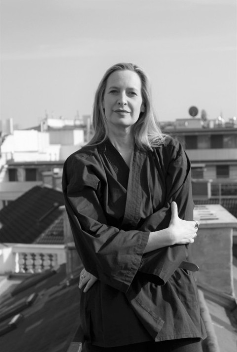 Ingeborg Bachmann auf ihrer Terrasse in der Bocca de Leone/Rom, um 1970