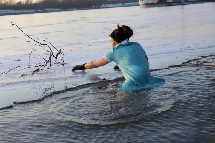 Fotos: Barbara Deissenberger _ performing „Undine geht“ _ Donau/Wien 19.1.2026 _ Undine geht, Ingeborg Bachmann, 1961 _ Walter Pobaschnig
