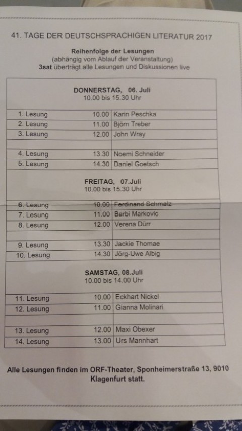 Lesende und Lesereihenfolge _ Bachmannpreis 2017