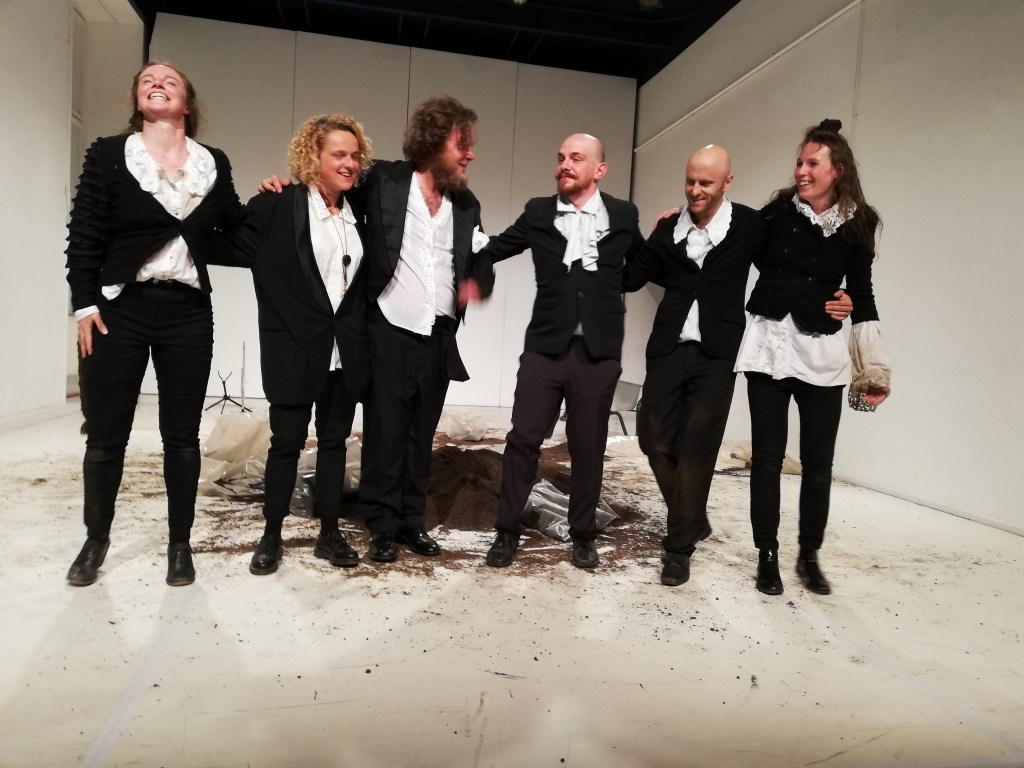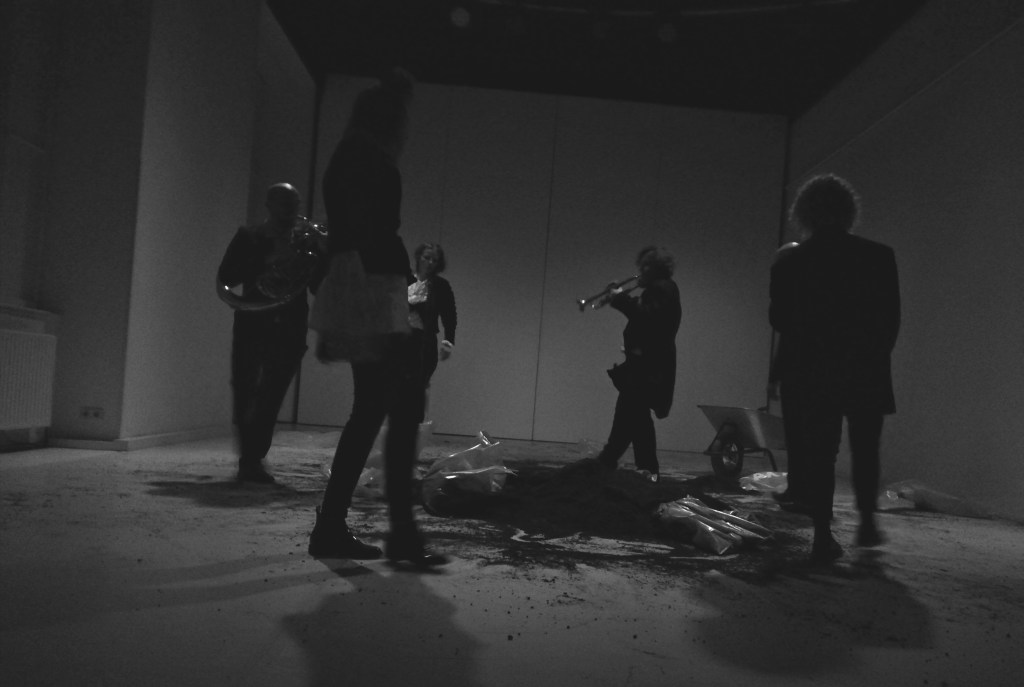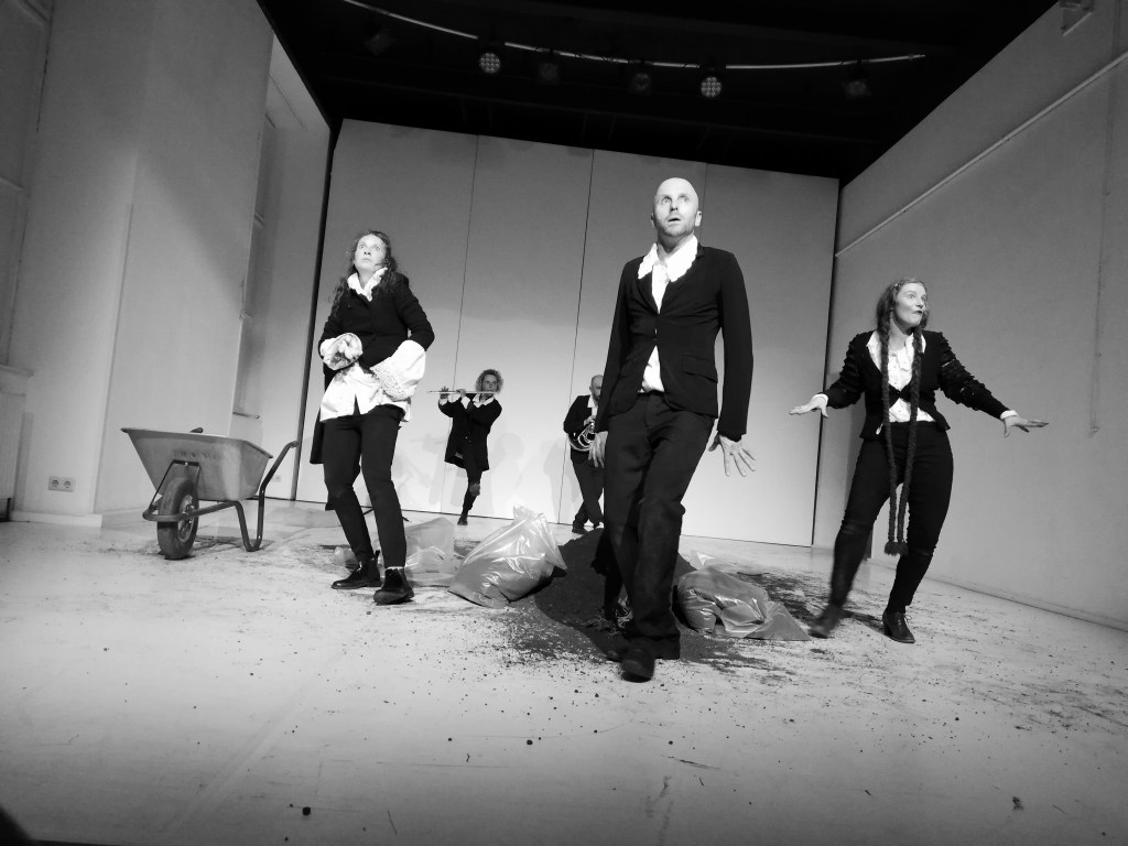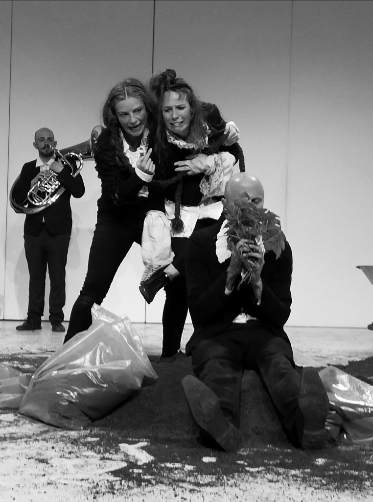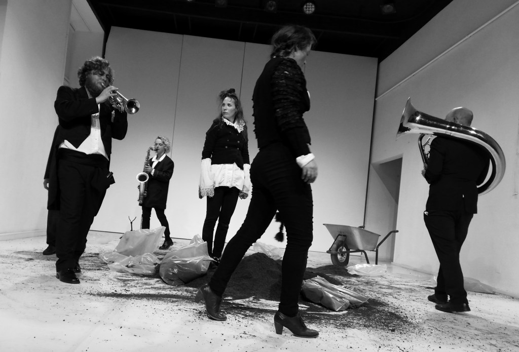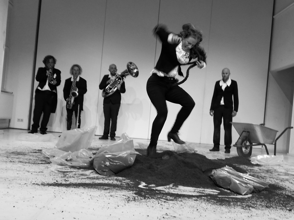 mit ISABELLA JESCHKE, MICHAELA SCHAUSBERGER und GERALD WALSBERGER, MARKUS PECHMANN (Trompete), DARIO SCHWÄRZLER (Tuba) und ANNA TSOMBANIS (Saxophon), Dramaturgie THOMAS BISCHOF, Kostüm/Ausstattung PIA STROSS, Bühne/Grafik SEBASTIAN SPIELVOGEL, Künstlerische Beratung SUSANNE BRANDT.