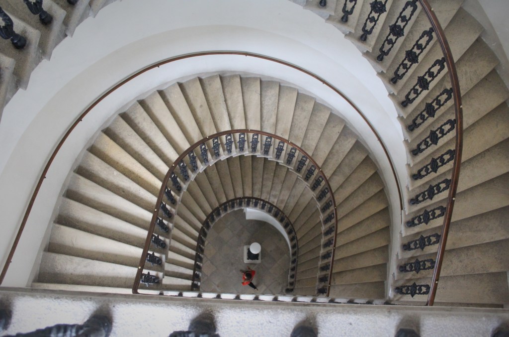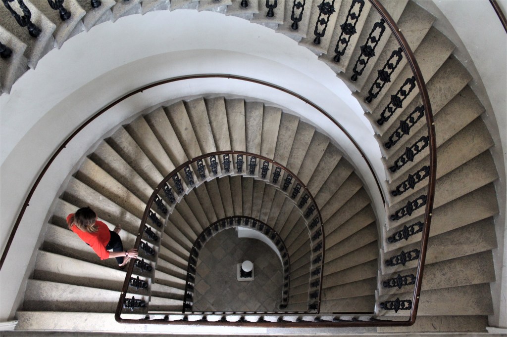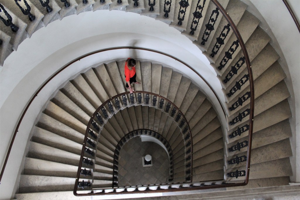 In meinem neuen Roman geht es auch viel um Licht und Schatten. Wie es ja jetzt gerade hier im Innenhof zu sehen, spüren ist (lacht). (Anm: es wechseln Regen und Sonne und dessen Lichtspiel während des Interviews im Hof des Romanschauplatzes).