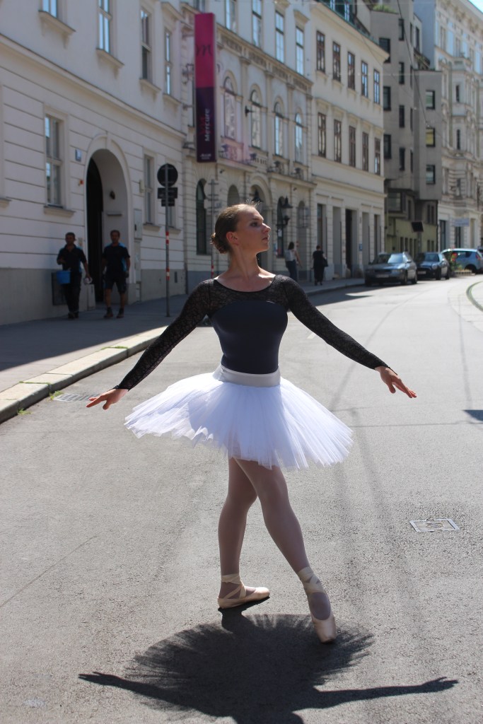 Mein Weg zum Tanz begann damit, dass meine Mutter meinte, „wir gehen besser nicht eine Ballettvorstellung sonst möchte sie tanzen“. Meine Mutter hat es dann trotzdem getan (lacht) und damit war eigentlich der Weg geebnet und der Wunsch danach da. Es war für mich nie der Rosa-Ballett-Kleid Traum sondern die Freude an Bewegung, das Lernen, Arbeiten und auch das An-Etwas-Dran-Bleiben. Die Freude am Fortschritt, der Weiterentwicklung hat mich auch immer bewegt dies weiterzumachen. Es ging dann über Ausbildungs-, Projektstationen bis jetzt zum gegenwärtigen Unterrichten und zur künstlerischen Arbeit in Wien. Ich bin jetzt sechs Jahre in Wien.