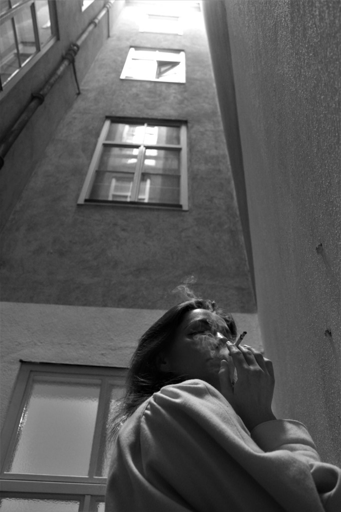 Bachmanns Verhältnis zum Rauchen ist bekannt. Erstaunlich für mich war allerdings, dass ich mich beim Photoshooting gerade in den Momenten des Rauchens dem Roman-Ich am nächsten fühlte, obwohl ich keine Raucherin bin. Die Geste des Rauchens war im gewissen Sinne der Transmitter zwischen der Realität und der Phantasie. Solche introspektive Verschiebungen sind Nahrung, von der ich lange zehren kann, ein Bewusstseinskarussell, das Fremdes in Vertrautes wandelt.