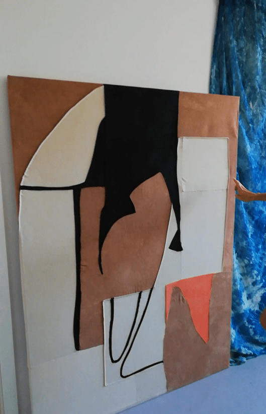 Dieses Werk hier ist aus recycelten Materialien. Ich habe es mit Kaffee und Braunton gefärbt.