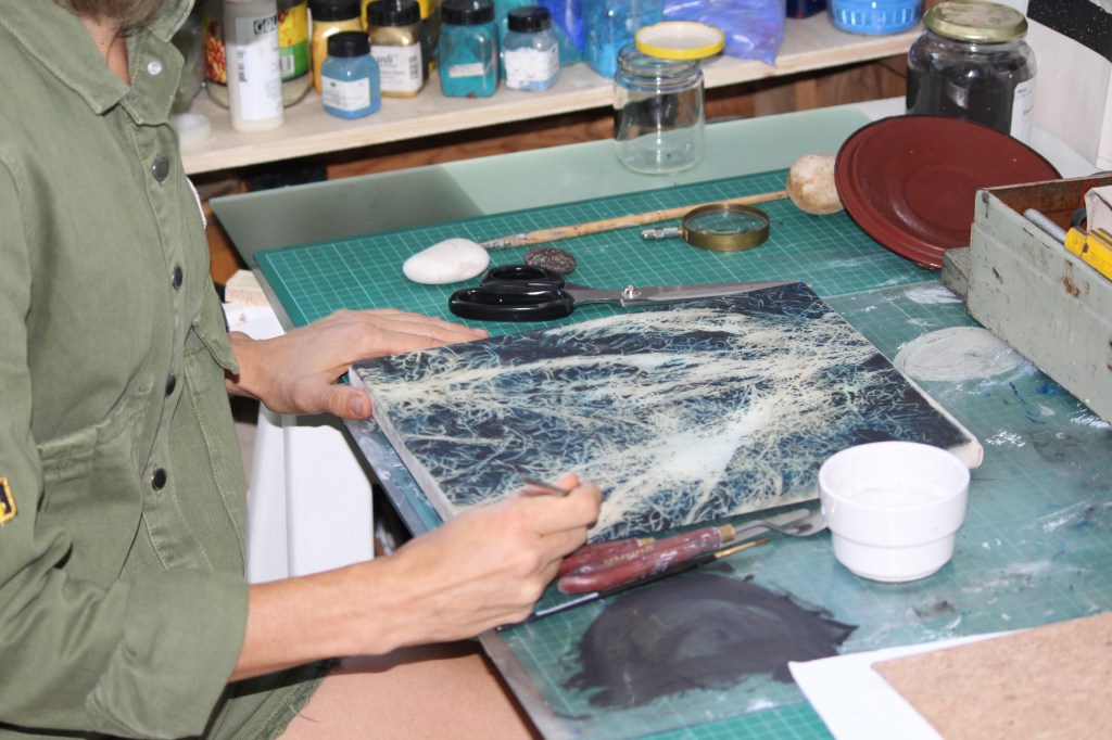 Die künstlerische Technik ist dabei die Cyanotypie (Fotodrucktechnik, Anm.), mit der ich schon in meinem Diplom viel gearbeitet habe.