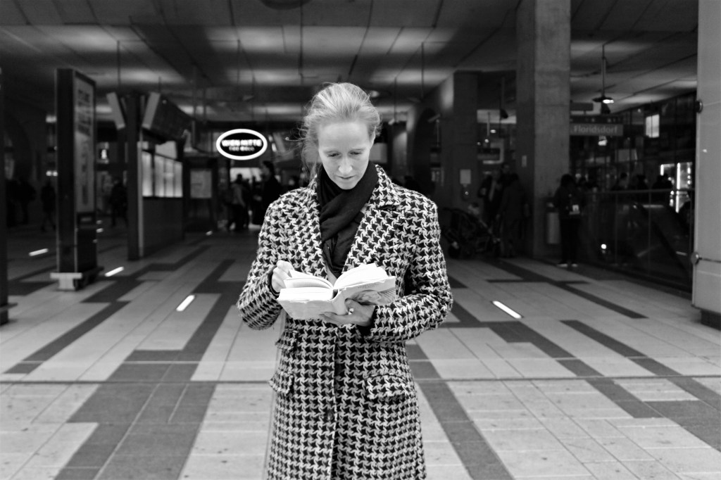 Momentan lese ich morgens, ich starte den Tag mit einem Buch. Und sonst in der U-Bahn (lacht). Und sehr gerne auch nachmittags in am Balkon in der Sonne. Ich habe auch immer ein Buch in der Küche. Während der Reis kocht, lese ich (lacht). Im Zug natürlich auch.