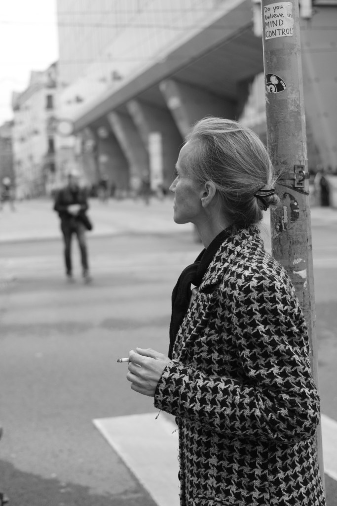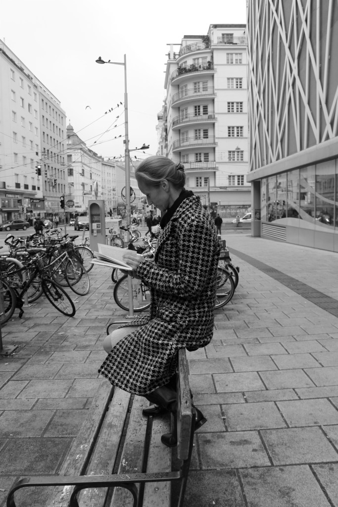 Der Roman hat mich zum persönlichen Nachdenken angeregt. Natürlich hatte ich dabei im Hinterkopf, später darüber sprechen zu können. Ich fand es lustig, dass im Roman selbst eine Interview-Situation vorkommt. Oder der Herbstmantel der Ich-Erzählerin, den sie im Frühjahr ihren Frühjahrsmantel nennt. So wie der Mantel, den ich für´s Shooting gewählt habe. Parallelen sind auf so vielen Ebenen zu finden! Verarbeitet habe ich das Gelesene in Gesprächen und Tagebucheinträgen.