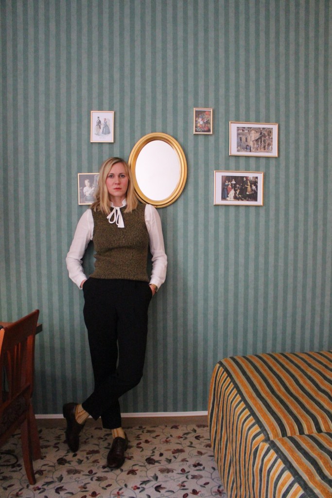 Und bei Ingeborg Bachmann habe ich mir natürlich nochmal die Fotos im Internet angesehen, klar weiß man wie sie ausgesehen hat und man kennt die Zeit. Und ich dachte perfekt, das habe ich alles Zuhause und würde ich auch selber tragen.