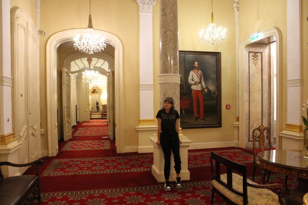 Ich kannte Wien zu dem Zeitpunkt nicht sehr gut, da ich erst frisch ankam- ich fand das Hotel außergewöhnlich, mit dem Stuck, den Teppichböden, den schweren Vorhängen und Ölgemälden der Monarchiegeschichte an den Wänden.