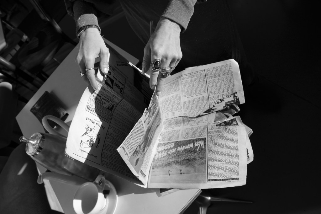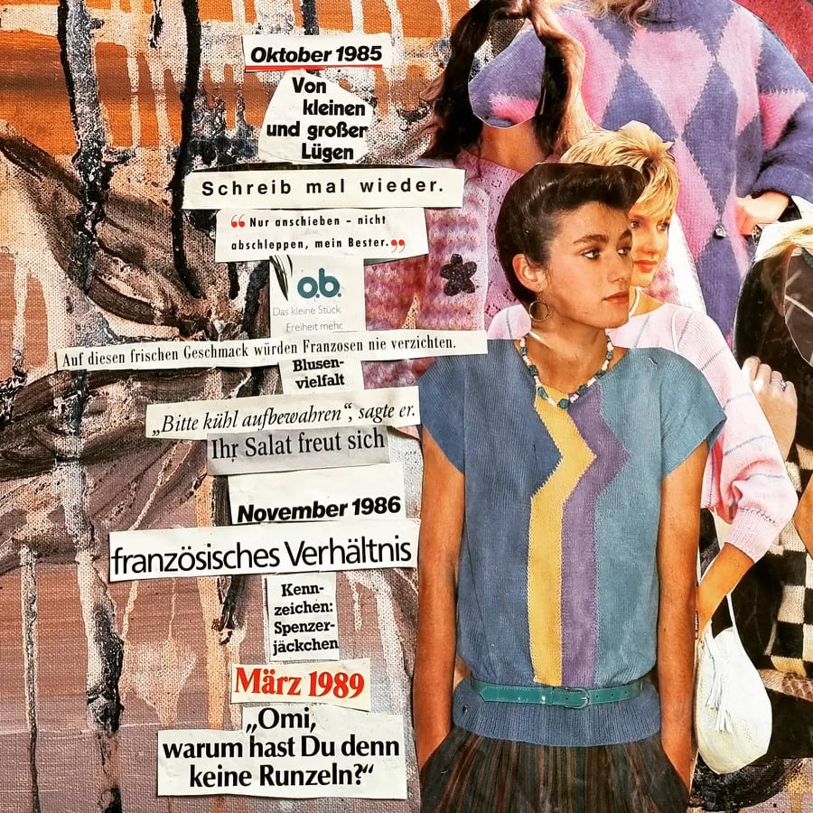Collagen als Gesamtbild sind ebenso eine wesentliche Form. Ich habe jetzt auch viele Zeitungen aus unterschiedlichen Epochen für meine Collagen gekauft. Das ist sehr spannend im Prozess des Ausschneidens. Etwa bei den Werbungen verschiedenster Epochen. Wie waren die Claims damals, wie sehen sie heute aus? Ich arbeite sehe gerne mit diesen Claims und da kommen oft sehr skurrile Dinge heraus, die mich dann wieder überraschen (lacht).