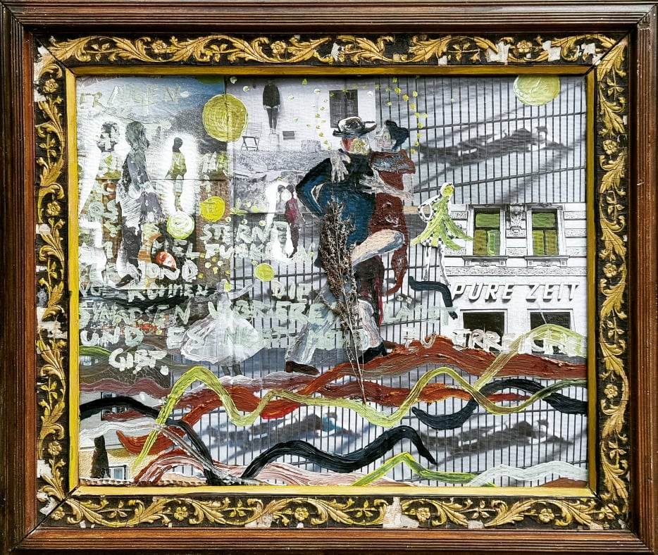 80×120 Öl, Ölkreide, Acryl Collagenelement a.textilisiertem Holzrahmen 2021