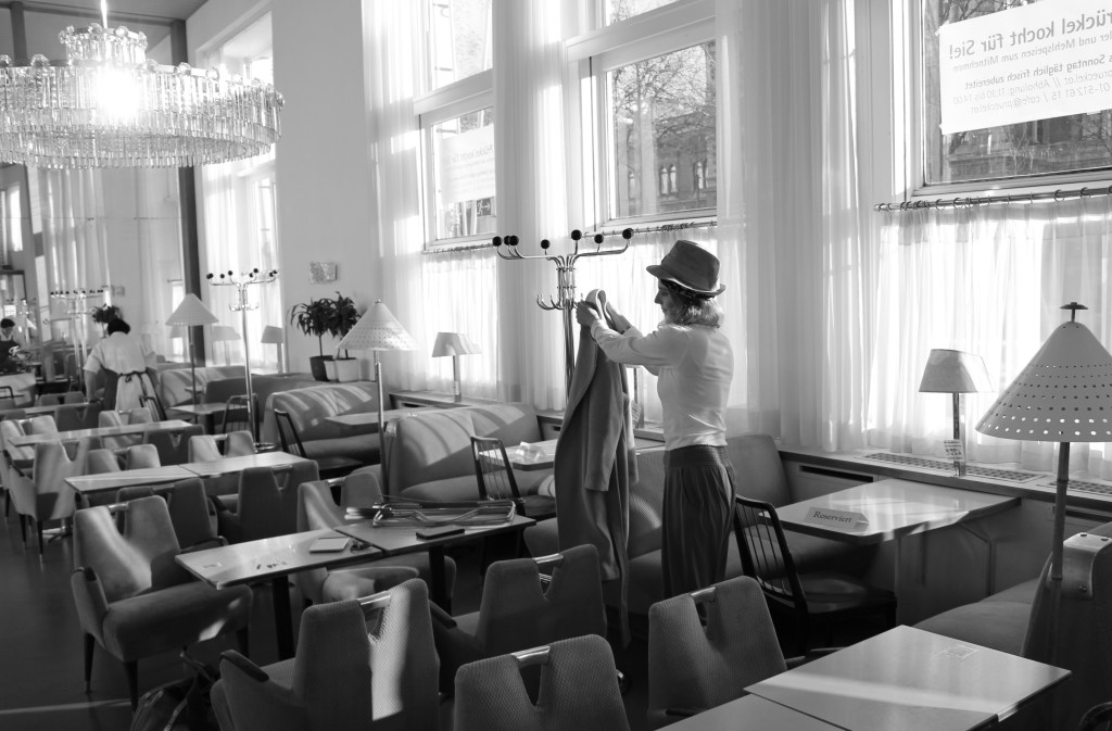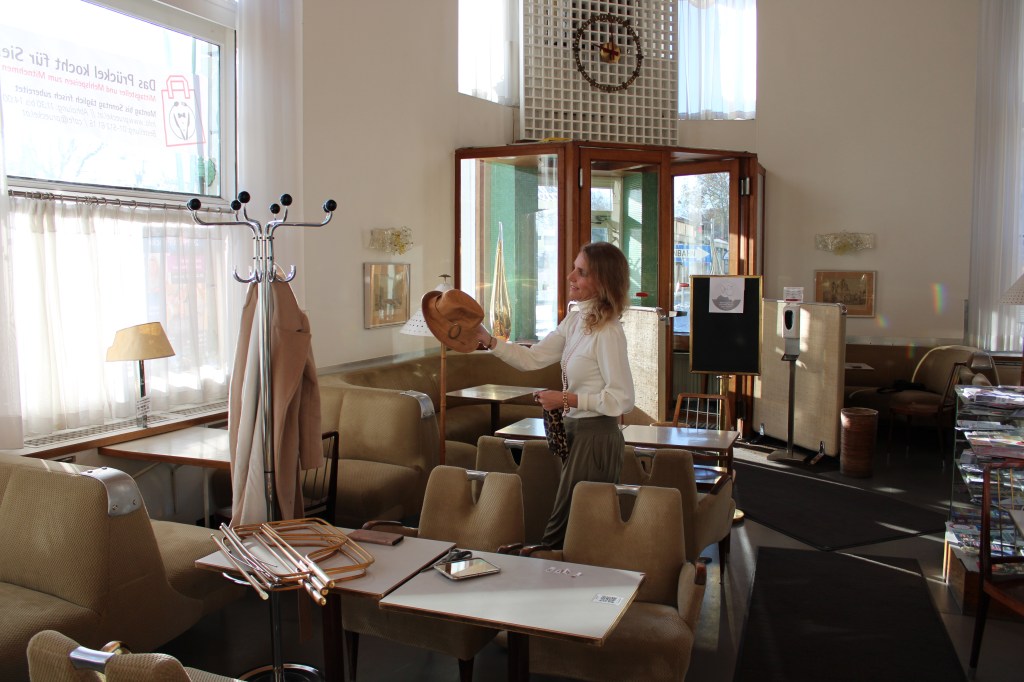 Wenn ich abends ins Cafè gehe, hier gibt es ja auch Klaviermusik, das ist eine ganz besondere Atmosphäre, hat etwas von einer Bar-Atmosphäre, sehr schön. Und am Abend trinke ich dann einen Wein. Da ist es vorbei mit dem Kaffee (lacht).