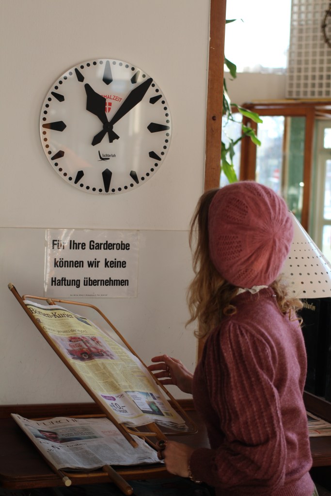 Das kommt auf die Tageszeit an. Ich bin gerne vormittags im Cafè und trinke da gerne einen Kaffee mit viel Milch. Es gibt auch sehr gute Kuchen hier, den Birnenkuchen etwa, das mag ich auch sehr gerne.