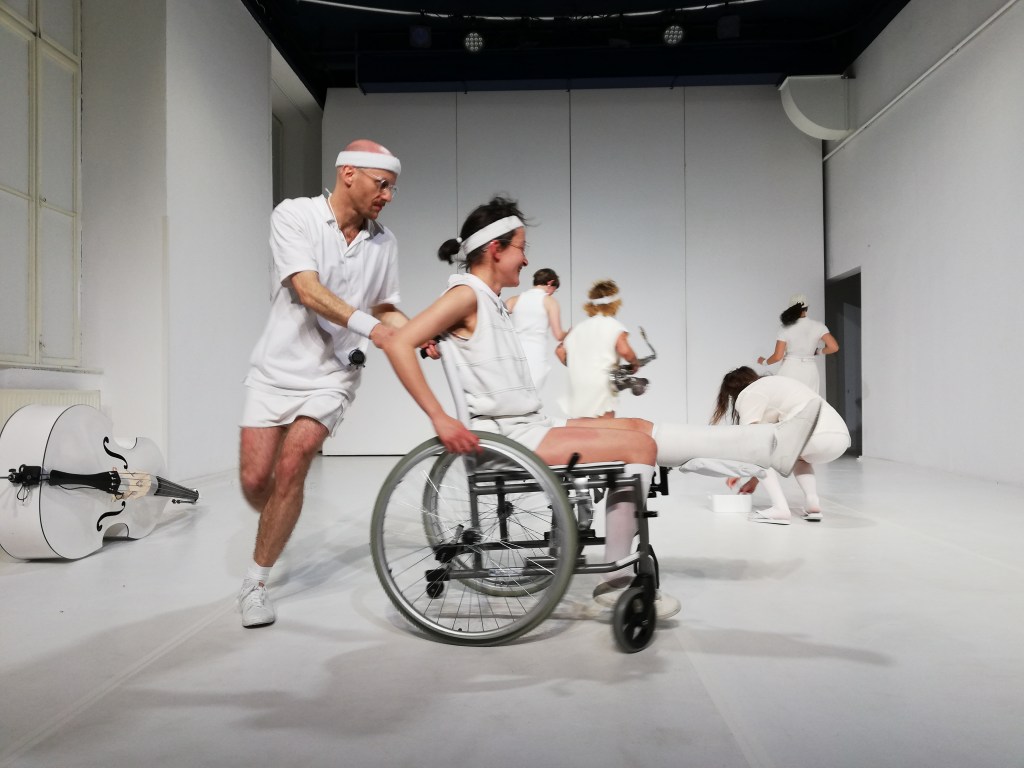 Antworten auf Fragen von Sinn und Universum werden dabei nicht geliefert, vielmehr wird der leere weiße Bühnenraum zur unberechenbaren dynamischen Ebene eines einzigartigen Ensembles, das in Sprach- und Körpervirtuosität alles zerlegt was nicht und doch im Raum ist – also Mensch und Zeit im Denken, Fühlen, Erleben, Verstummen.