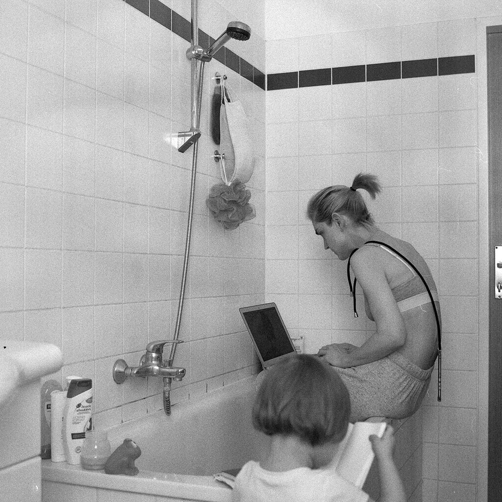 Da ich Mutter einer vierjährigen Tochter bin, ist mein Tag natürlich danach getaktet. Heißt, nachdem ich sie in den Kindergarten gebracht habe, geht mein Zeitfenster auf, in dem ich mich so gut wie möglich, um meine künstlerische Arbeit kümmere, ins Atelier fahre oder von zu Hause das administrative Drumherum erledige.