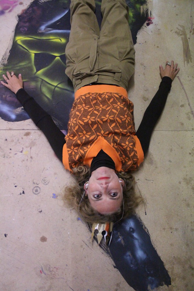 Ich arbeite ja schon seit längerem mit textilen Strukturen, aktuell fokussiere ich mich diesbezüglich auf Großformate, was technisch besondere Anforderungen mit sich bringt. Das heißt das Bespannen der großen Holzrahmen ist ein vorbereitender, aber prägnanter Arbeitsschritt für mich- das Bild ist schon im Entstehen, ich stehe praktisch selten vor der berühmt berüchtigtem weißen Leinwand.