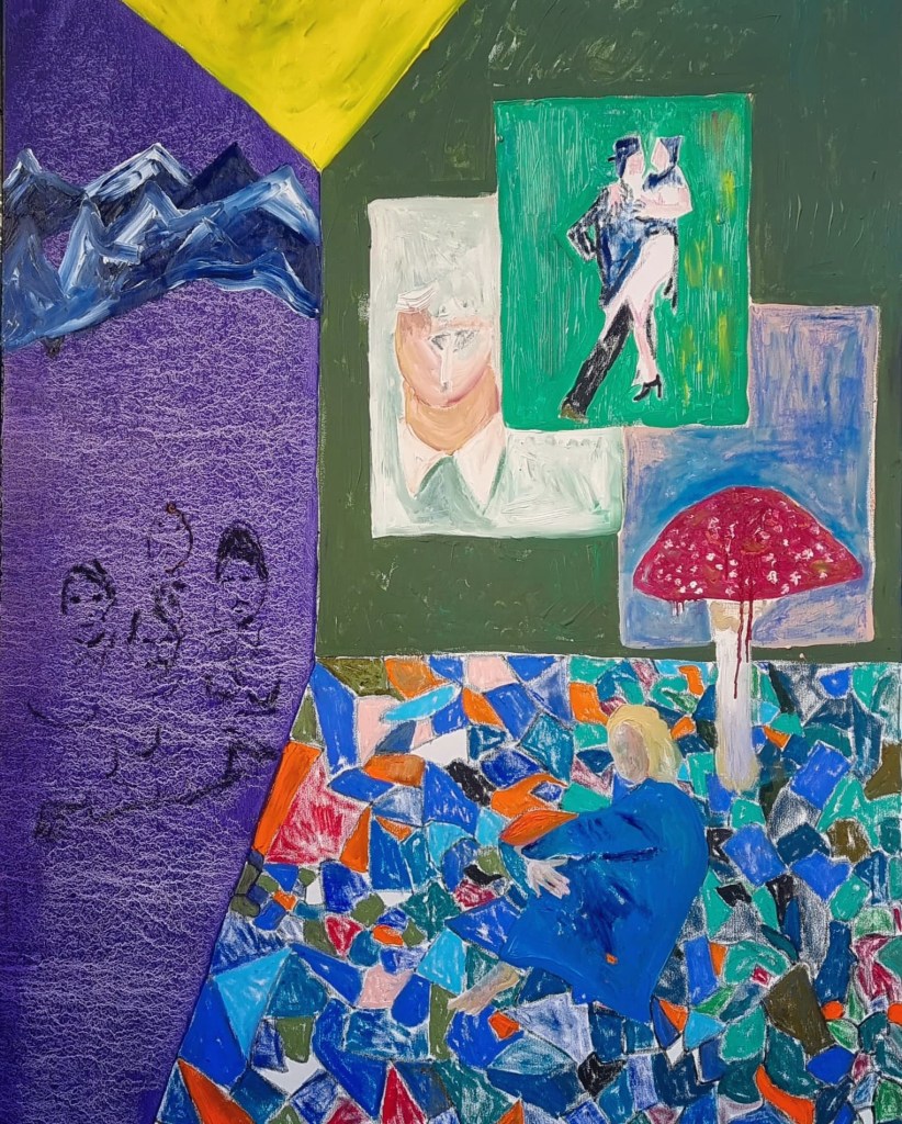 80×120, Öl, Acryl, Ölkreide, Spray, Collageelemente auf textilisiertem Holzrahmen 12/2021
