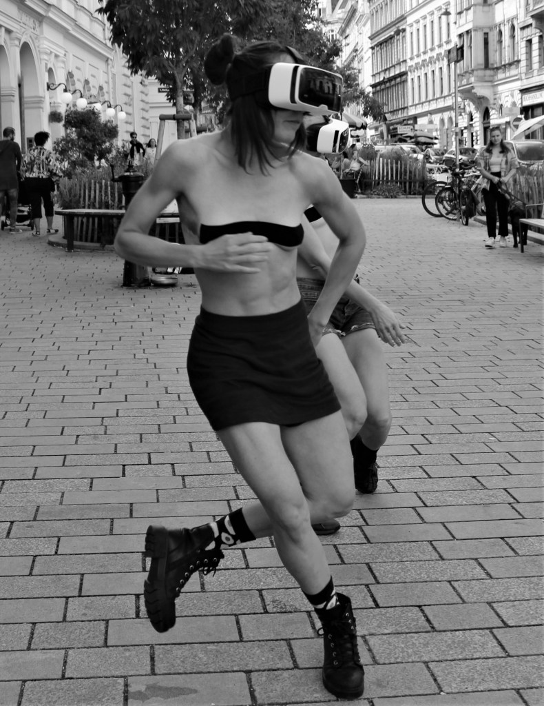 In ganz außerordentlicher körperlicher Expressivität, Intensität, Variation lassen die AusnahmekünstlerInnen Leonie Wahl, Desi Bonato und Bernhard Fleischmann Erfahrungssituationen der Präsentation und Interaktion im Internet in Freude, Hingabe, Spiel, Lust, Macht, Konformität, Selbstpräsentation, Erschöpfung, Distanz, Einsamkeit und mehr unvergleichlich eindringlich vor das faszinierte Auge und Ohr treten. Der Mensch und seine virtuelle Welt werden in aller Neugierde der Annäherung, Berührung, Erfüllung wie Verzweiflung und Hoffnung in höchster Tanzkunst, Choreografie wie Darstellung, sichtbar wie impulsgebend reflektiert.