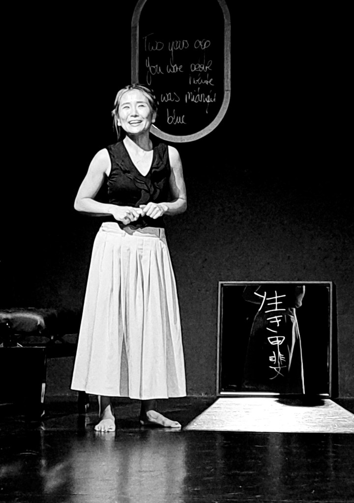 Die Ruhe wird dann jäh vom Soundlärm und Stress der Stadt unterbrochen und in Wort, Tanz und Musik beginnen sich die 4 hervorragenden Schauspielerinnen Manami Okazaki, Paula Krüger, Mirjam Plank und Elke Waibel in variantenreicher expressiver wie ganz stiller eindringlicher Darstellung den Eingangsfragen nach Zugängen, Gründen, Fragen von Identität, die auch von Intervieweinspielungen ergänzt werden, zu stellen und diese Fragen beeindruckend dialogisch im wunderbaren Gruppenspiel wie in Ansprache an das Publikum zu öffnen.