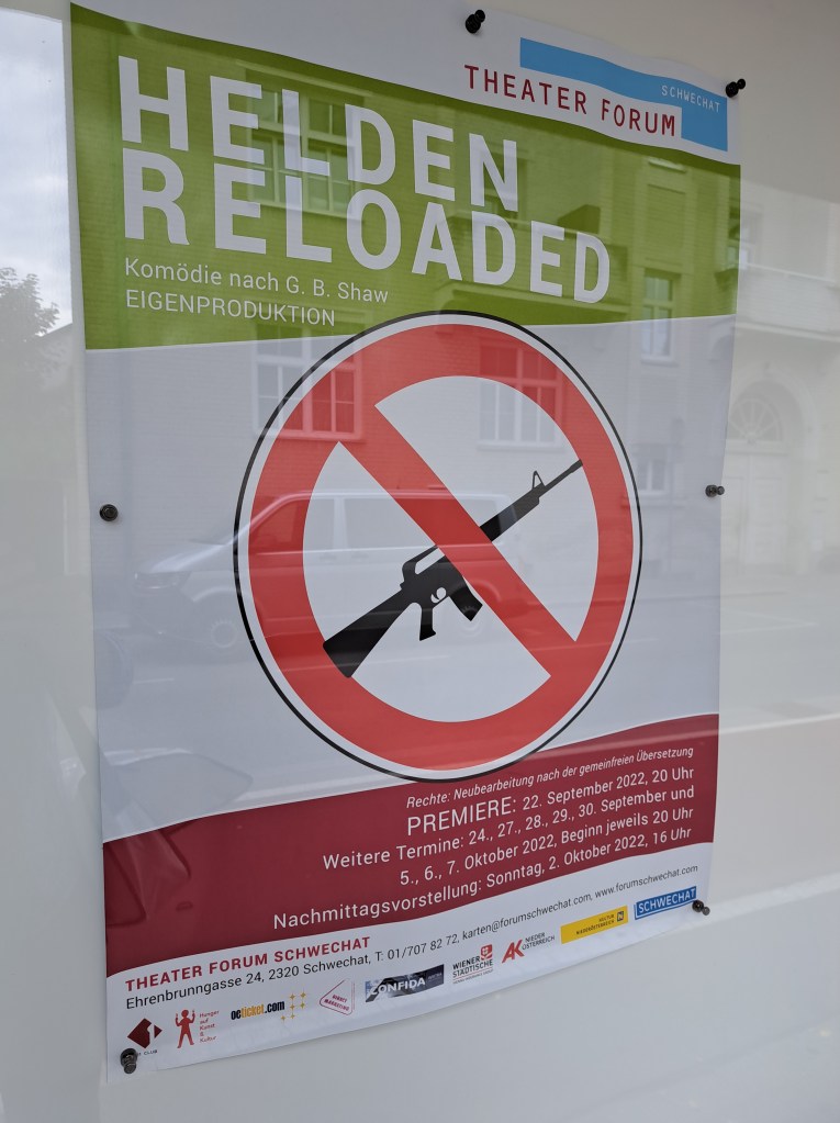 Die Programmierung beginnt üblicherweise ein Jahr vor der Premiere. Vor einigen Jahren ist aus dem Theaterherbst mit Standort Zwettl ein Programmpunkt im Herbst des Spielplanes des Theaters Forum Schwechat geworden. Das Ziel: jedes Jahr ein anderes EU-Partnerland anhand einer Komödie vorzustellen. Heuer wäre das Irland, daher Shaw und Helden. Eigentlich auch mit dem Hintergedanken, dass es leider immer Kriege gibt. Nun ist leider ein europäischer im allgemeinen Blickpunkt, viele andere gewalttätige Konflikte in aller Welt sind es nicht.