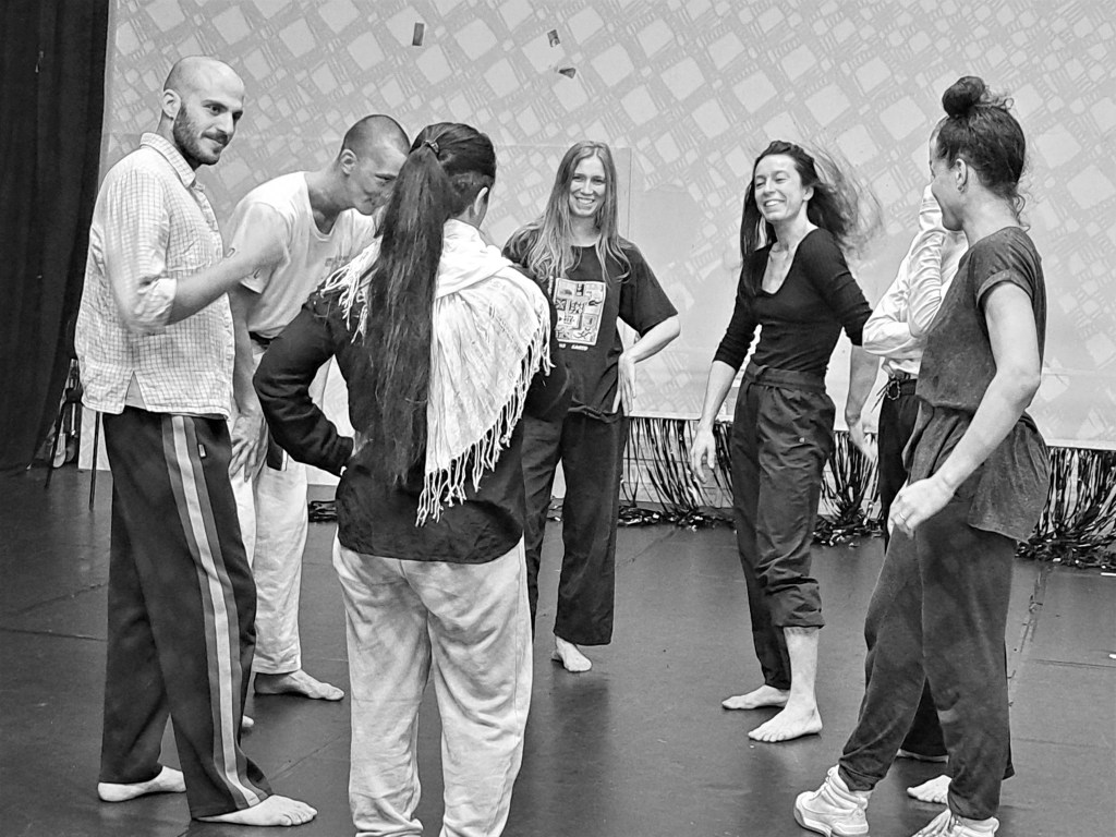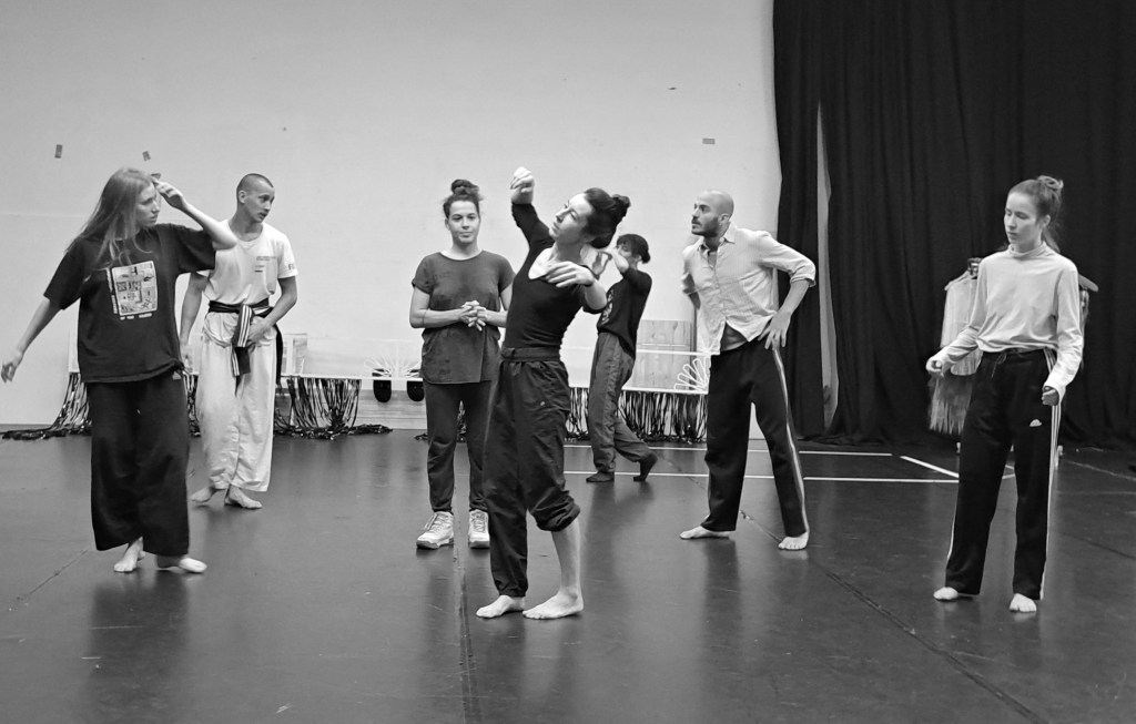 The choreographer Ulduz Ahmadzadeh guided us to dive into iranian culture by sharing spiritual practices, traditional steps, instruments and rhytmical patterns on which we build up the choreography