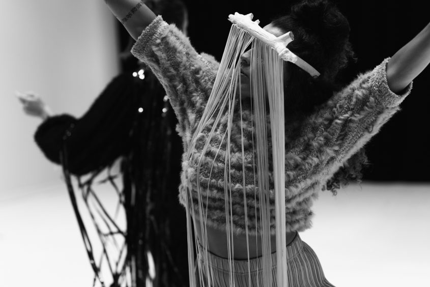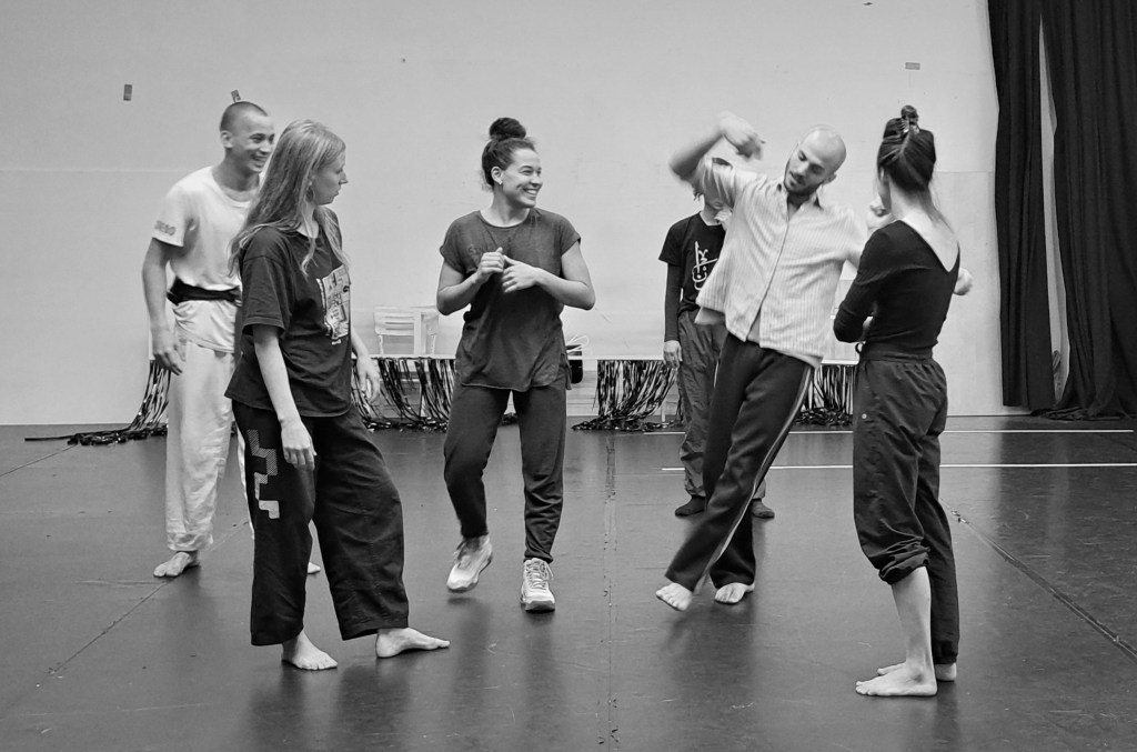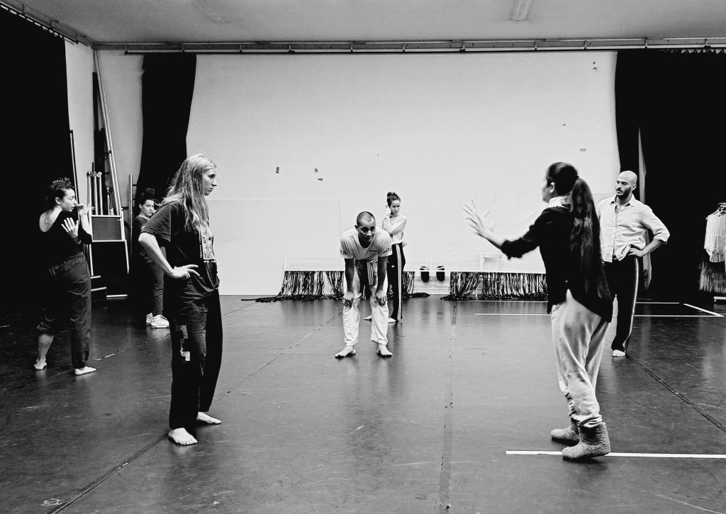 The piece is also about showing how the role of women has changed with the years, by presenting a solid and equal community at the beginning of the piece, where everyone has a specific and important individual role, for later underline the polarization between men and women. A clear submission and serving role for the girls and stong masculine attitude for the boys. Eventually we play also with sarcasm and shif of roles to make fun of it and shows how twisted and sad this polarization is. The piece doesn’t want to make a statement of that because the main focus is to give voice and spaces to these dances, how they can be integrated in our European contemporary dance environment and be the inspiration for our dance material.