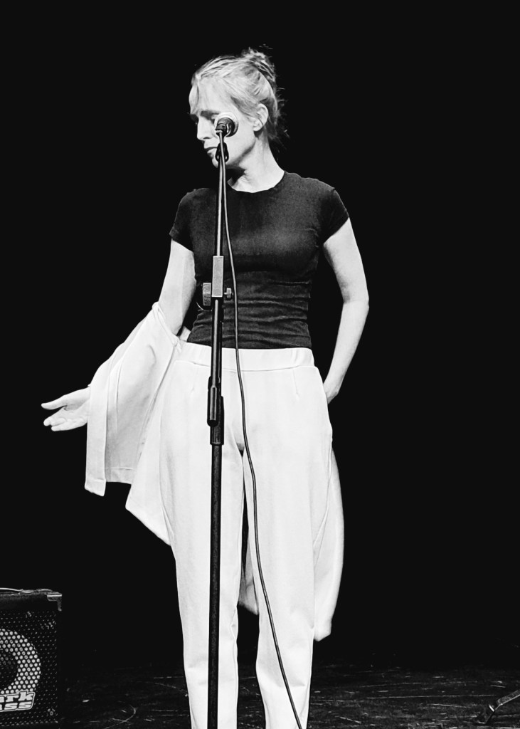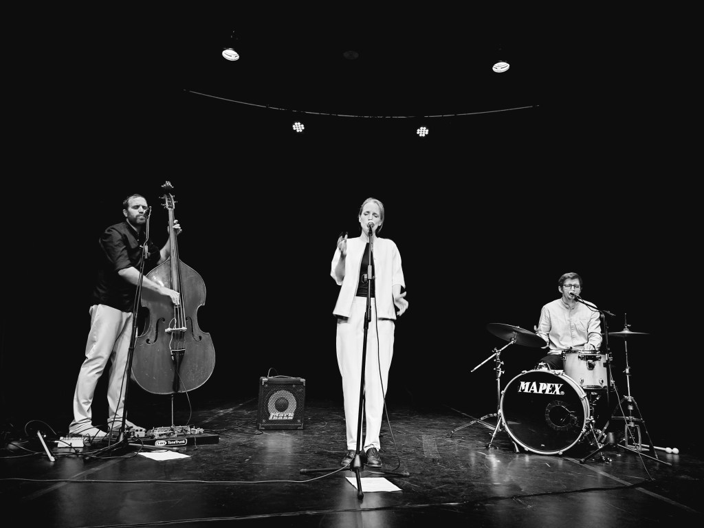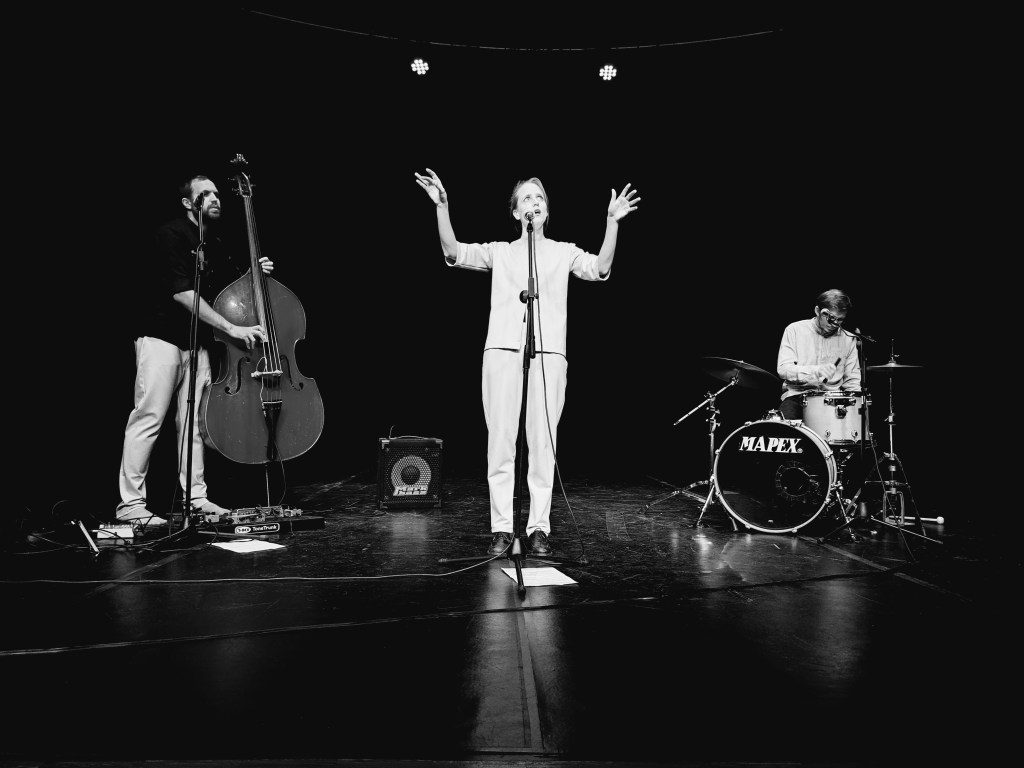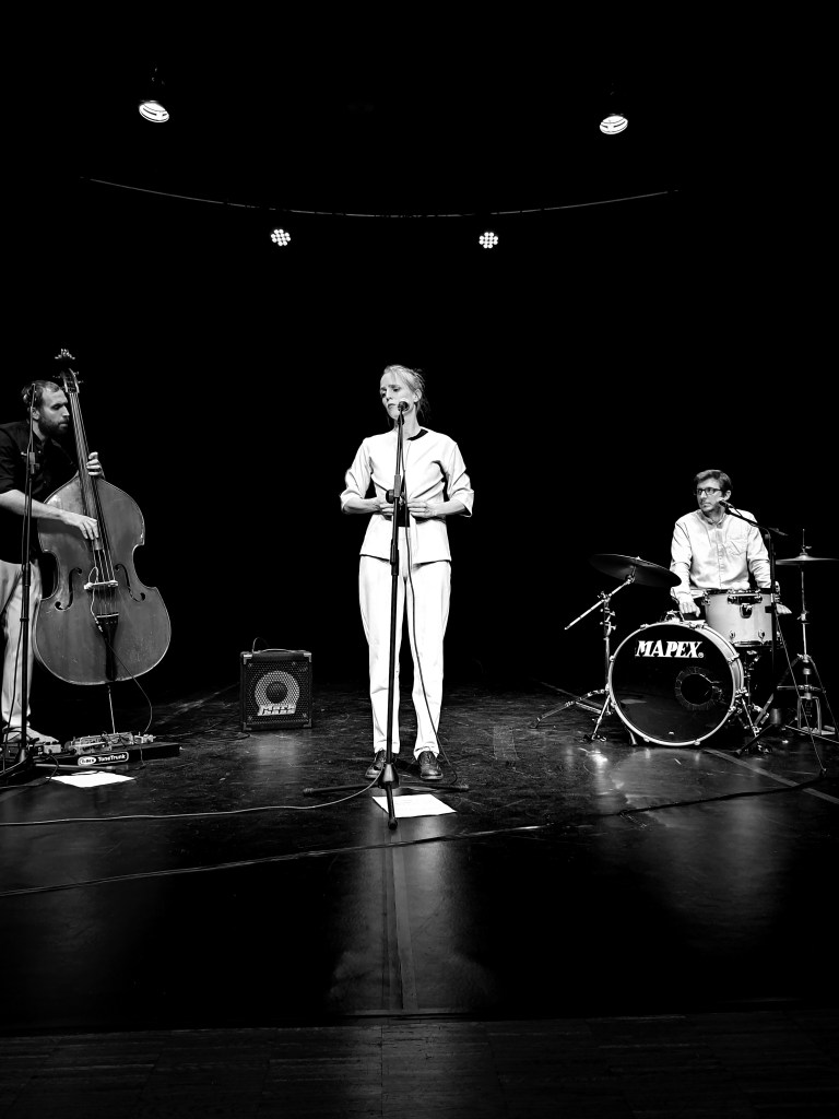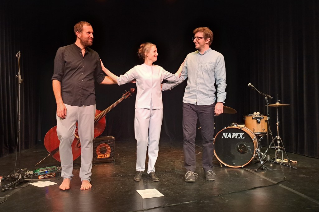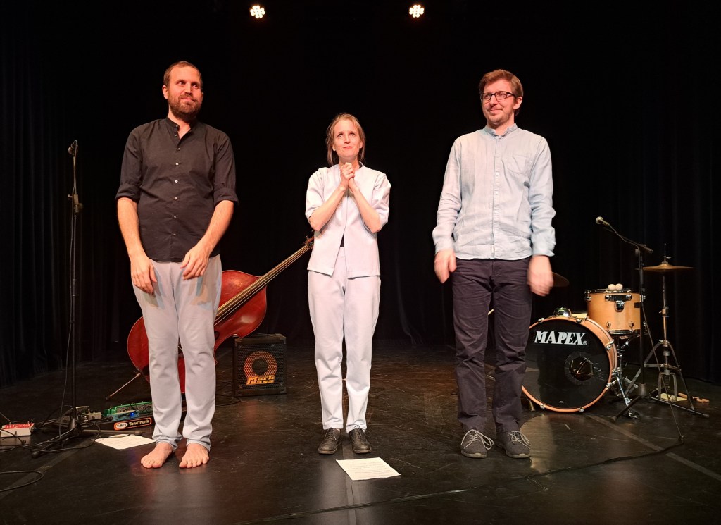 Birgit Radeschnig im kongenialen Trio mit Mathias Krispin Bucher, Kontrabass, und Florian Steinringer, Schlagzeug, ergreift skizzenhaft Erinnerung im Gesagten und Ungesagten der Großmutter und formt daraus ein Requiem, das in der Verbindung von Sprache und Klang an ganz große Traditionen österreichischer Text- und Musiktradition anknüpft und diese selbstbewusst weiterführt. Hier sind Wiener Namen wie Ernst Jandl und Ludwig Hirsch zu nennen, aber auch Hermann von Veen und Nico (Velvet Underground), wie auch Kärntner Komponisten wie Thomas Koschat oder Gerhard Glawischnig, die gleichsam mit im Publikum sitzen und wie dieses ergriffen und begeistert staunen ob dieser Erzählkraft von Wort und Klang, die in unendlicher Aufmerksamkeit und Zärtlichkeit ein Lebensmosaik und alles Leben herum öffnet und einen herrlich humorvoll-kritischen Dialog führen lässt.