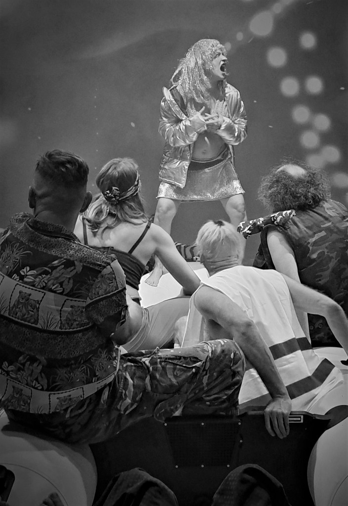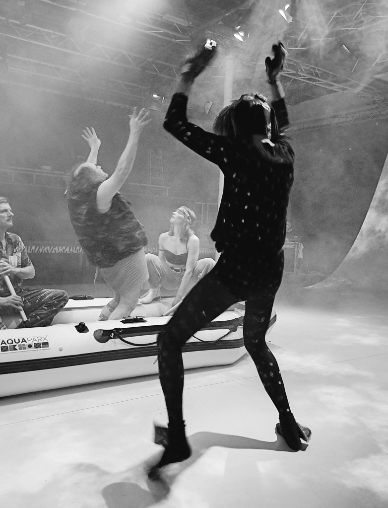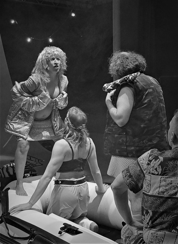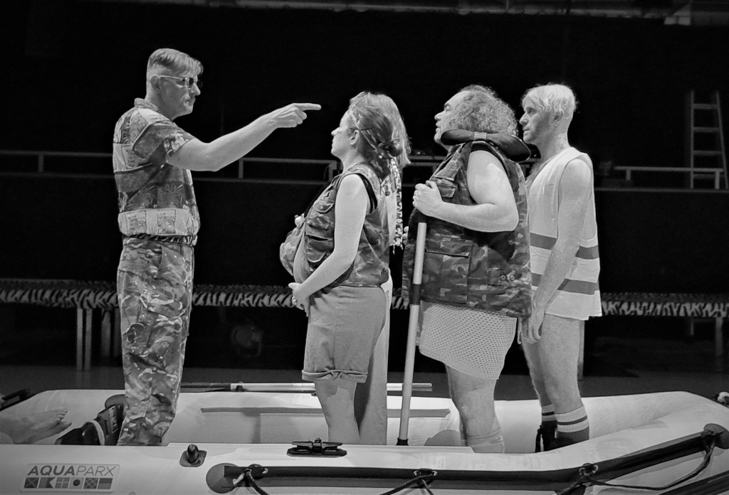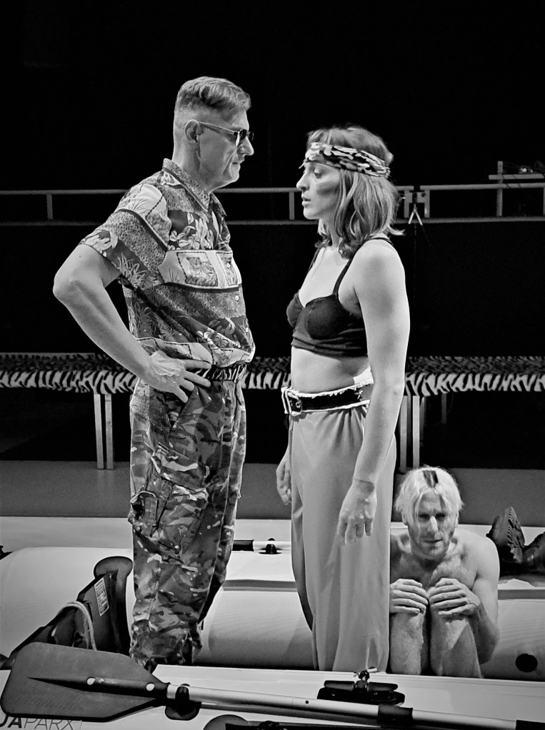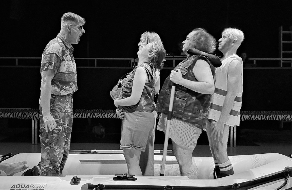 Die Ausnahmeschauspieler*innen Kristina Bangert, Yvonne Brandstetter, Sophie Resch, Kajetan Dick, Hubsi Kramar, Gerald Walsberger und Ernst Kurt Weigel, können alles und begeistern auf engstem Boot-Bühnenraum in einzigartiger individueller Spielkraft und Präsenz, der Szenen Koordination im atemlosen Tempo wie einem unglaublichen Balancegefühl (Schlauchboot!).