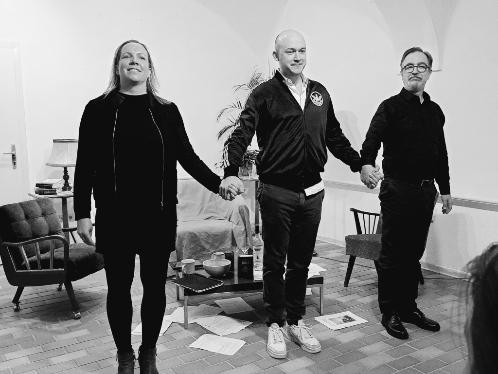 Die Wiener Erstführung von „Über das Anfangen. Wortlaute aus dem Wohnzimmer“ der Schauspieler:innen/Regisseur:innen Alice Mortsch und Alexander Hoffelner wie des Komponisten und Musikers Christian Tesak setzt im reduzierten Bühnenbild einer Wohnzimmeratmosphäre ganz auf die Wort- und Spielkraft authentisch-autobiographischer Dialoge, die in Offenheit, Reflexion und Humor als bestes Schauspieltheater das Publikum in Aufmerksamkeit, Unterhaltung und Impuls packen. Die Pointen in unterhaltsamen wie tiefsinnigen Erzähl- und Reflexionsebenen werden vom großartigen abgestimmten Bühnentrio wunderbar gesetzt und sind bestes Kammerspiel. Ebenso ist die Musik hervorzuheben, die sehr gut die Dialoge trägt und verbindet. Text und Komposition von Christian Tesak kommen Bestes an und begeistern. Die großartige Stimme von Alice Mortsch ist dabei eine der Überraschungen des Abends, bitte mehr davon!