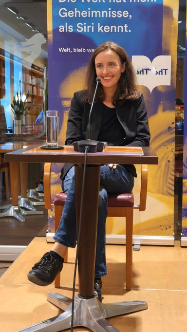 Ich bin Vollzeit berufstätig als Kommunikationsberaterin und Trainerin, außerdem haben wir zwei Kinder. Das heißt, mein Tag beginnt mit Care-Tätigkeiten: Kinder aufwecken, Frühstück und Schuljause vorbereiten. Weil ich selbständig bin, arbeite ich danach oft im Homeoffice. Falls wenig zu tun ist, gönne ich mir zwischendurch Arbeitspausen. Die sehen so aus, dass ich lese, bevorzugt am Balkon, oder an einem literarischen Text schreibe.