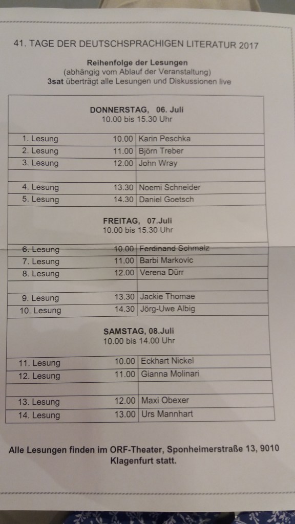 Zur Teilnahme kam es ganz profan: Der Verlag hat eingereicht und ich wurde eingeladen. Ich weiß noch, dass ich die Nachricht in Luxemburg bekommen habe, auf dem Busbahnhof, von meinem Verleger per SMS: „Klagenfurt ruft.“ Das war unmittelbar vor der Leipziger Buchmesse 2017.