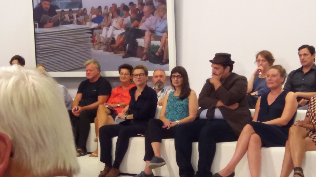 Michael Wiederstein (ganz links, Juror), Urs Mannhart (Lesender),