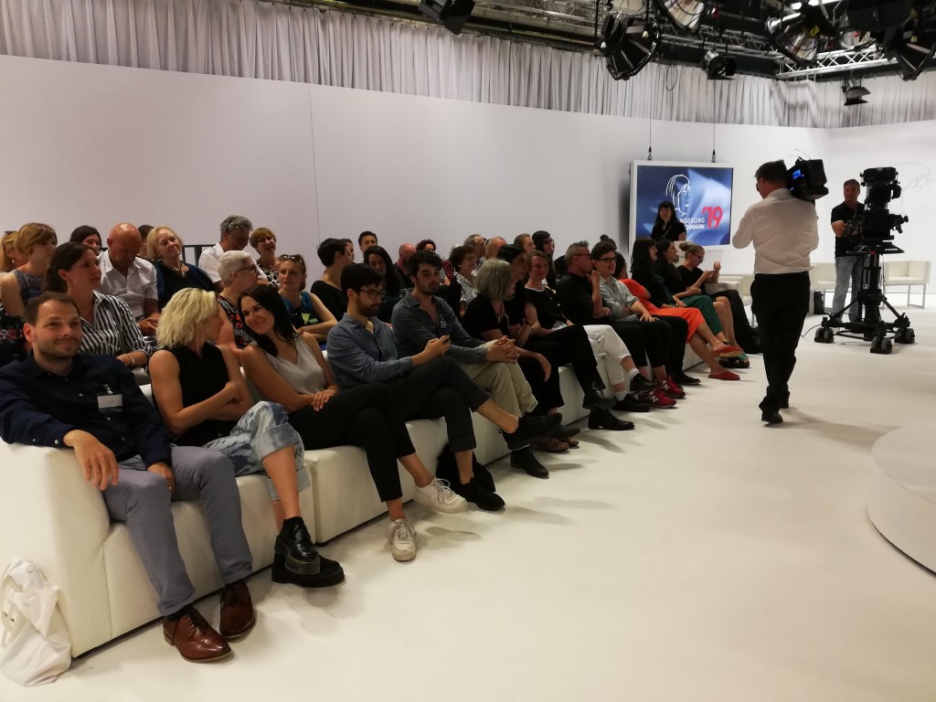 links sitzend Sarah Wipauer (Schriftstellerin, Bachmannpreisteilnehmerin 2019)