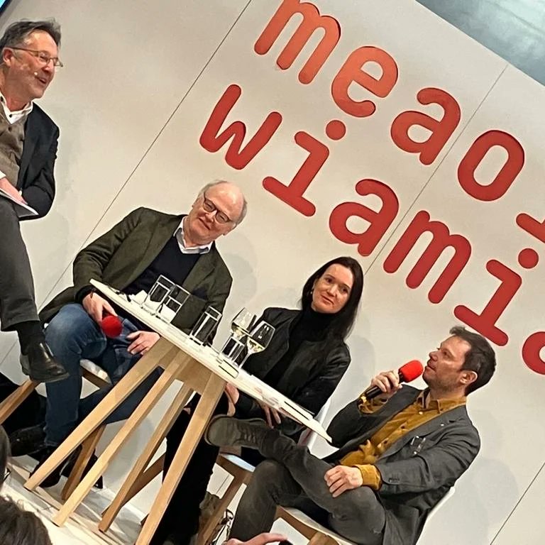 Mir gefällt der Claim „mea ois wia mia” von Thomas Stangl sehr gut. Scheidung sehe ich darin keine heraufdämmern, im Gegenteil: der Spruch, in dem das wohl typischste Merkmal der österreichischen Literatur, die Sprachmusikalität, anklingt, entgrenzt und umarmt die Welt. Zugleich handelt es sich freilich auch um eine deutliche Absage an ein scheuklappenhaftes „mia san mia“-Denken, auch die Biederkeit des ORF-Slogans „ORF. Wie wir“ wird entlarvt und aufgebrochen. Österreich ist ja weder in der Literatur noch im Allgemeinen jene eindimensionale und -sprachige wintertouristische Alpenfestung, auf die es jeden Wahlkampf wieder, und nicht einmal nur von einer Partei, reduziert wird.