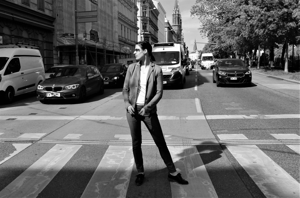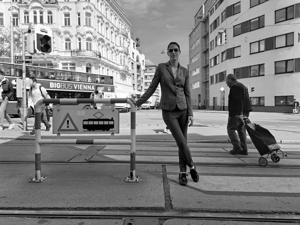 Unser Fotoshooting zu Falco findet in Wien outdoors statt und nimmt den Puls, die Inspiration der Stadt im hier und jetzt auf. Wie ist dies für Dich als Künstlerin öffentlich zu agieren ohne abgegrenzten Bühnenraum?