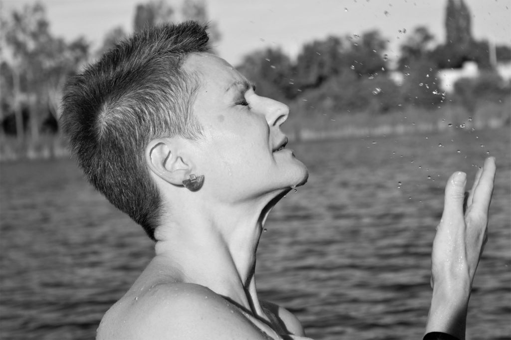 Wasser ist für mich allgegenwärtig, ich nehme es um mich und in mir wahr. Es ist der Lebensraum per se. Wasser ist eine defragmentierende, vereinigende, heilende,befähigende Kraft – auch im menschlichen Körper. Ein Lebenlang treibt mich die Sehnsucht nach der Auflösung erstarrter Muster auf – in meinem (Tänzer)Körper und auch im Bewusstsein. Ein freies, fließendes, sinnliches Sein und Miteinander. Kein Wunder, dass die von mir entwickelte somatische Methode „Liquid Space“ heißt und die Verbindung mit der (Wasser)-Körperintelligenz fördert.