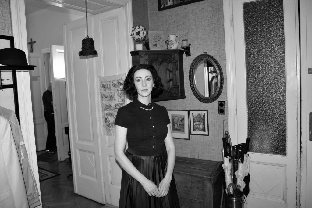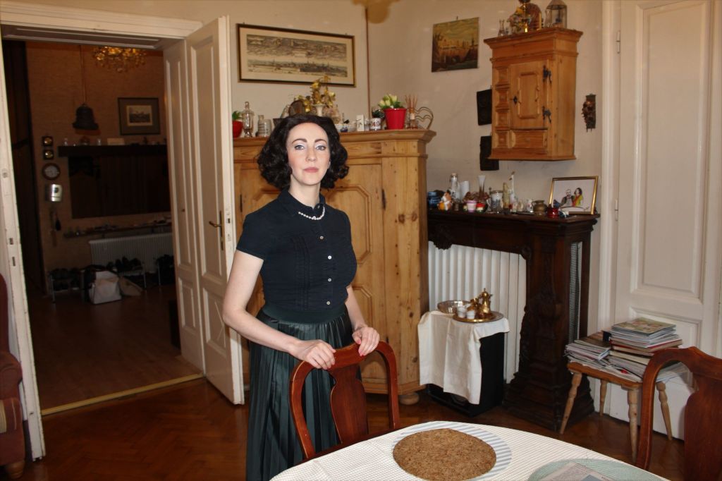 im Interview und szenischem Fotoportrait am Wohnhaus von Hedy Lamarr in Wien/Döbling: