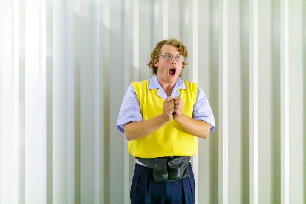 Szenenfoto _ Phillipp Laabmayr in „Lagerkollaps! inside/out“ _ TEMPORA/Wien _ folgende _