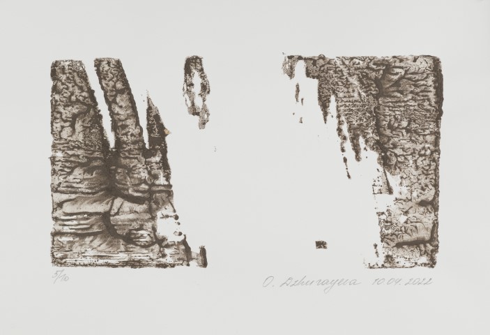 I’m devastated. Days pass and every morning waking up I realize that the war continues. The news plunges into apathy for everything. I can’t believe we’ve been living like this for 21 days. I can’t draw, because my art is about contemplation, about light, about the routine that you can enjoy. Now this is not possible. I am deprived of my usual tools, place of work, home. But the desire to live and work is stronger. I gathered my thoughts and do what keeps me afloat. The first woodcut of my life, printed with Ukrainian black soil. This is about the window of my hope, about the windows of all the destroyed houses and lives, about the fact that these are our houses and our land, about the fact that we cannot be broken, we cannot be defeated! Glory to Ukraine! Glory to Our Heroes!“We stand on Our Own Land”, 19.03.2022, woodcut printed by Ukrainian black soil, 12,3×23,2cm