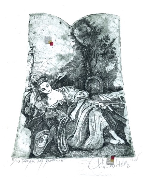 I’m Andrew Levitsky, a Graphic Artist and Printmaker, continue to do what I can, know and love. I always work in black and white art. And now it keeps me going on. Life goes on. I use Intaglio technique – modern Intaglio which includes different ways of work with metal: both Etching, Embossing, Engraving, Lavis, Aquatint, Dry point and Mezzotint. A combination of different manners, union of graphical embossing and picturesque intaglio allows the artist to create complicated, wide in range, intense in expression. The possibility to draw freely with a needle on a metal board preserves a straightforward manner of art’s creation and imprints artist’s individual mode and temperament. Surface is natural for Intaglio. Due to this, imprint obtains deepness and lightness. A fundamental stroke is short or long, straight or creatively stretched, condensing or crossing; it is able to communicate different shades of the mood as well as the landscape’s condition, its multidimensionality, spaciousness and airiness. I hold principally on to the laws of the classical Intaglio printing technique.