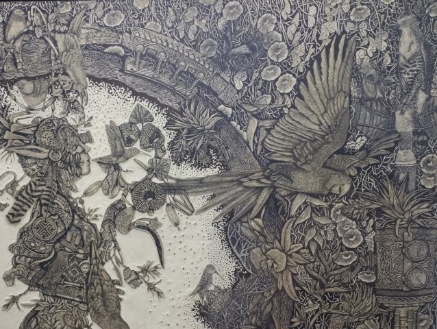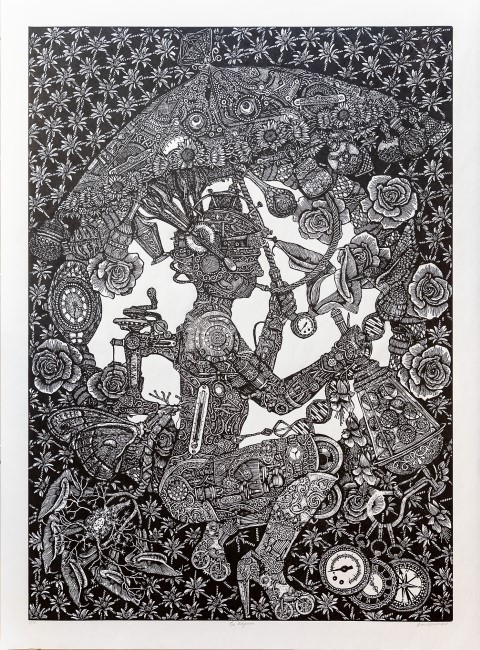 On non-class days, my passion for creating woodcuts comes to life. Each engraving becomes a vivid expression of my thoughts and creativity, providing deep moments of immersion and artistic freedom. These works, often from generous matrices, such as my latest piece measuring 1.40x180cm, reflect my reflections on life, capturing the intersection between the human, especially the feminine, the mechanical, and the divine. Natural elements pulse through the compositions, making each animal and plant a link in the grand symphony of life.