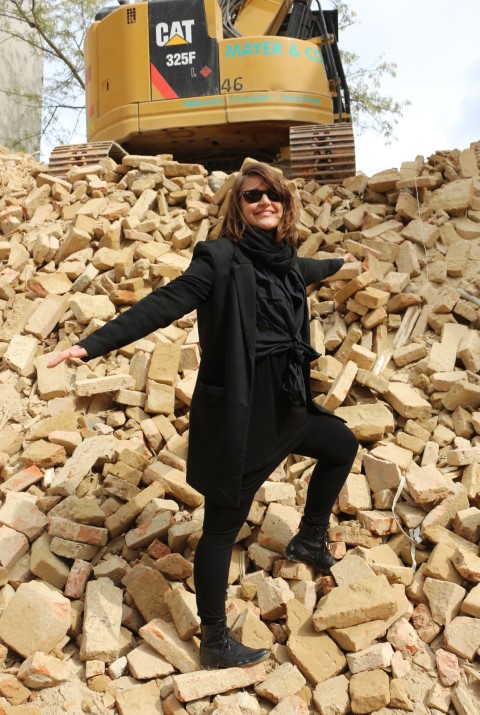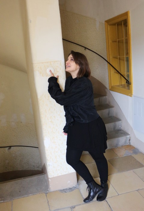 Constanze Hojsa vor dem Wohnhaus von Hansi Lang _ Wien