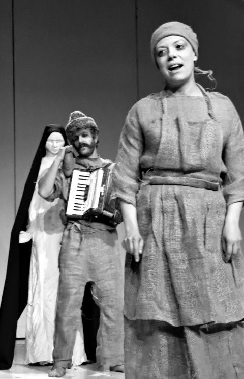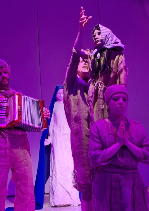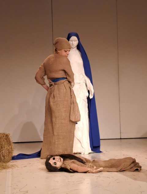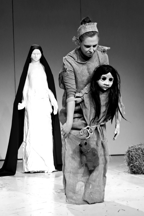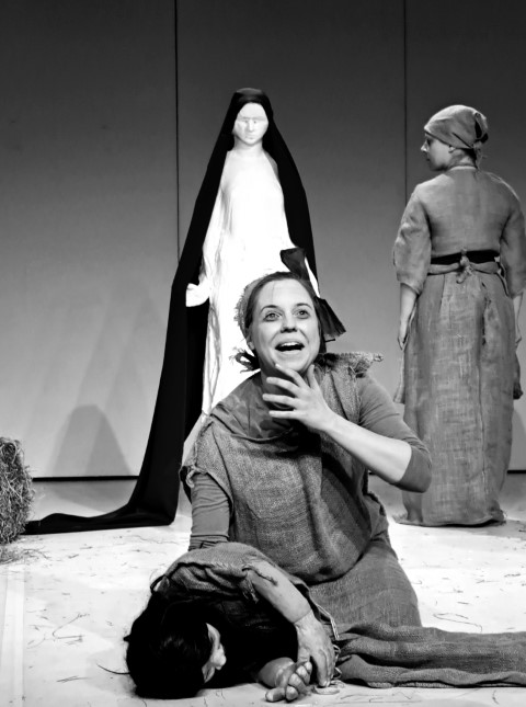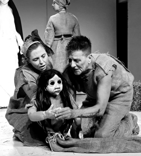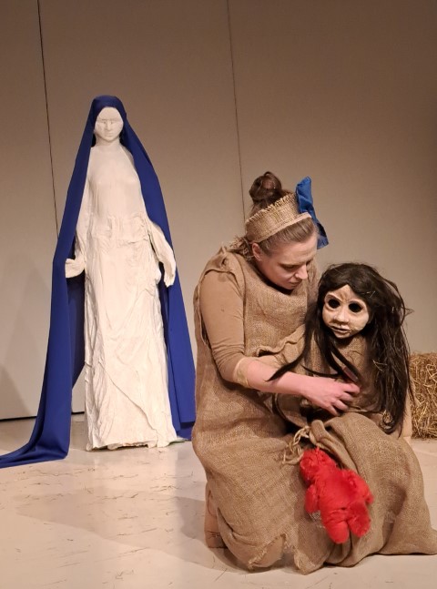 Regie, Dramaturgie und Ensemble gelingen ein Kunststück, welches in wunderbarer Narration wie äußerst beeindruckender Rollenvariation und dialogischer Abstimmung in Wort und Bewegung das Publikum gleichsam mitnimmt in die Emotion und den Spannungsaufbau der bestens gewählten Szenenfolge. Die Erzählung Lavants bekommt hier ein mitreißendes Bühnenleben, in einem Feuerwerk großartiger Schauspiel-, Puppenspielkunst. Es ist allen Beteiligten – Kostüme, Puppe wie Bühnenbild – wurden vom Ensemble selbst beeindruckend hergestellt, herzlich zu gratulieren! Die Puppe „Wechselbälgchen“ ist in ihrer Form und Ausdruckskraft von Stefanie Elias sensationell konzipiert und wird von der so vielseitig begabten Wiener Schauspielerin grandios bespielt. Jula Zangger, welche die großartigen Jute-Kostüme hergestellt hat, die auch beste Spieltauglichkeit haben, wie die zentrale Maria-Statue in Gips (mit Tränen am Schluss) toll erschaffen hat, brilliert in Erzähl- wie Spielkraft und zeigt einmal mehr, dass sie zu den herausragendsten, vielseitigsten Bühnenpersönlichkeiten Österreichs gehört. Großartig ebenso Rainer Juratti, der im anspruchsvollen Rollenwechsel das Publikum und wohl auch Christine Lavant bestens beeindruckt und unterhält in Präsenz, Dynamik seines wunderbaren Schauspielkolorit. Sehr stark auch Benjamin Klug am großartig dezent akzentuierten Akkordeon wie Gruppenspiel. Regisseurin Ursula Leitner, zweifellos eines der größten Talente wie seit Jahren renommierte Größe österreichischer Bühnenwelt begeistert mit einer Inszenierung, die alle Register höchster Theaterkunst in Werkadaption, Spannungsaufbau, Ensemblespiel zieht und dabei wesentliche Maßstäbe im modernen literarischen Bühnentransfer setzt. Das ist Spitzenklasse wie Literatur hier in Anspruch, Aussage wie Spannung kraftvoll lebendig wird. Sophie Benedikte Stocker ist die kongeniale Dramaturgin, die ein Feuerwerk an Interaktion, Aktion wie Präsenz und Wirkung zu zünden vermag, das in allem voll aufgeht.