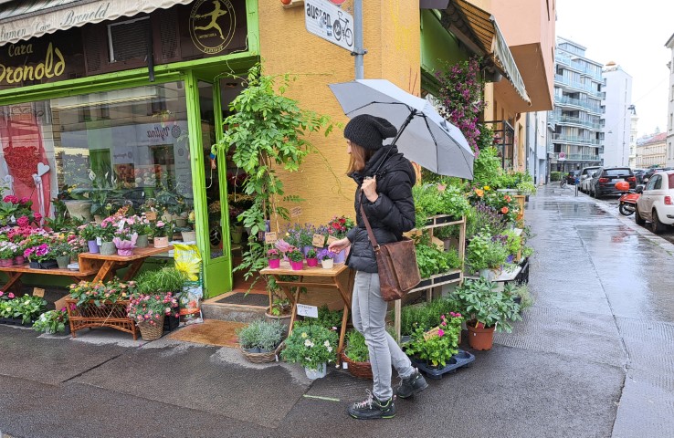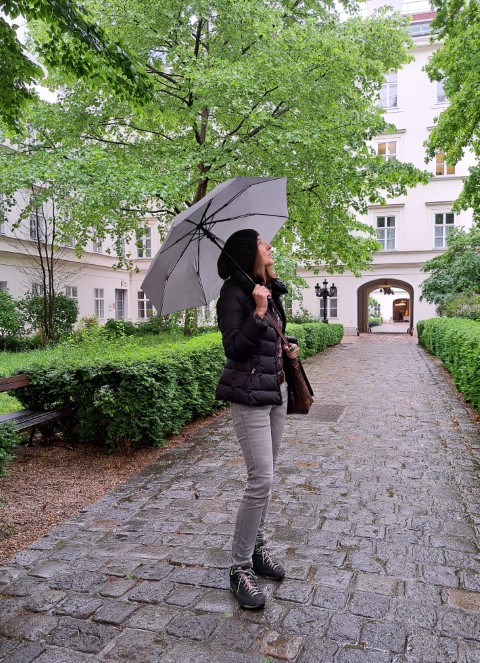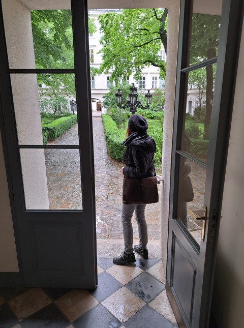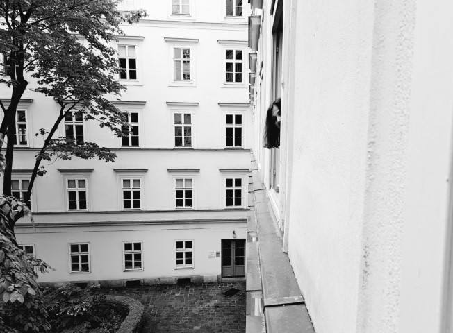 In der Beatrixgasse spüre ich eine angenehme, friedliche Energie; der begrünte Innenhof, fast schon ein Park, wäre für mich ein idealer Rückzugsort zum Schreiben. Beeindruckend finde ich die Tore der beiden gleichermaßen herrschaftlichen Altbauten in der Ungargasse, die schon ein wenig auf die Charaktere der Romanfiguren hinweisen: Auf der einen Seite das etwas verspielte schmiedeeiserne Tor in der Ungargasse 6, dem Wohnort der Ich-Erzählerin, das Sicht auf ein Foyer mit weißer Marmorstatue freigibt (die „Ewige Jugend“ als ganz eigener Ausdruck für das Wünschen oder die Sehnsucht, eine Hoffnung …). Und dann im Gegensatz dazu das riesige helle Holzportal in der Ungargasse 9, dem Wohnort Ivans, eines doch eher „nüchternen“ Bankers, dessen Wohnung sich (natürlich) im obersten Stockwerk befindet. Auch die Innenhöfe der Altbauten scheinen einander entgegengesetzt: verwinkelt klein und schattig (unsicher?) versus großzügig, feudal (selbstherrlich?).