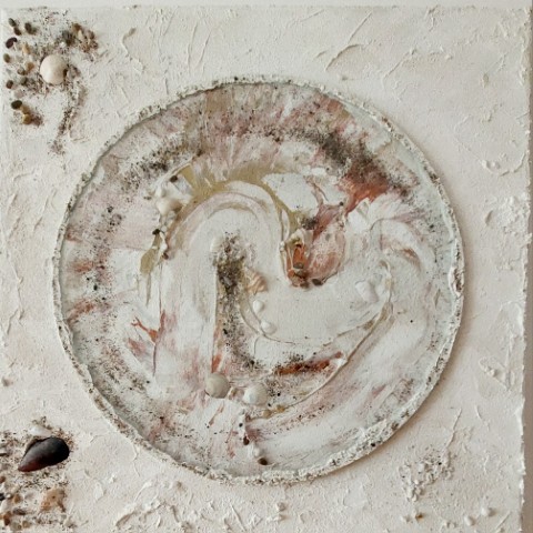 Acrylfarben – Mischtechnik, Glas eingearbeitet.