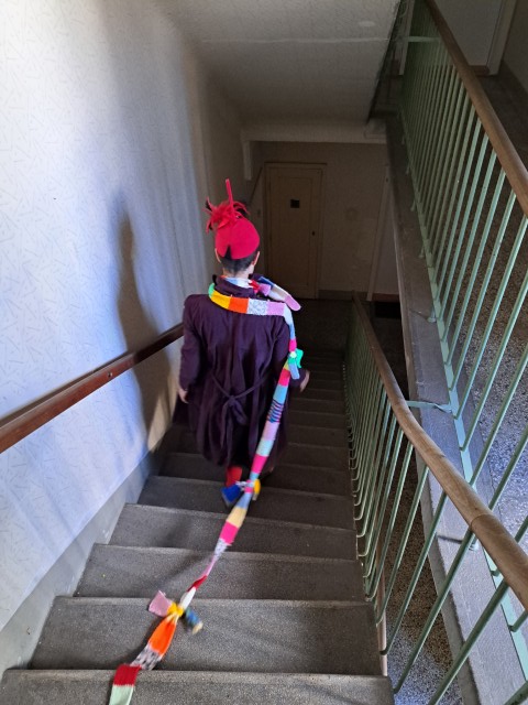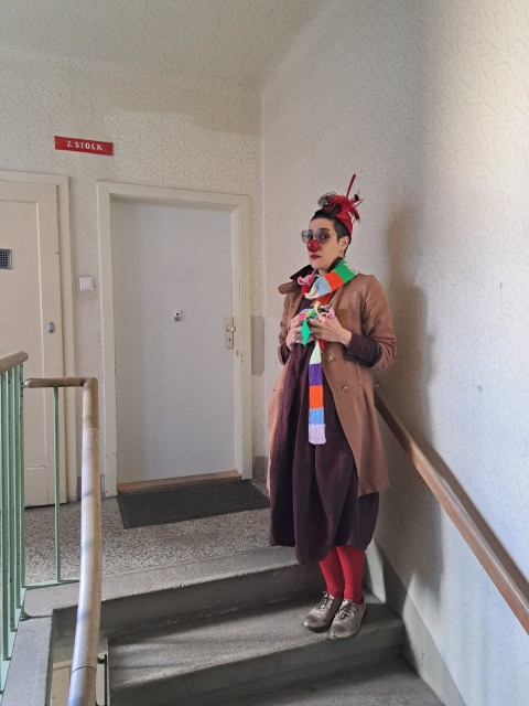 Fotos/Performance _ Tatiana Petkova, Clownin, Künstlerin _ Wien _ am Wohnort von Ernst Jandl in Wien_ Walter Pobaschnig 3/25