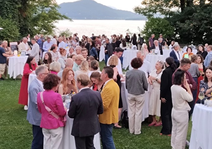 Veranstalter und Sponsoren (v. l. n. r.): Reinhard Draxler (KELAG-Vorstand), Brigitte Winkler-Komar (Land Kärnten, Leiterin Kunst und Kultur), Nadja Kayali (Intendantin Carinthischer Sommer), Horst L. Ebner (Koordinator Tage der deutschsprachigen Literatur), Christian Scheider (Bürgermeister von Klagenfurt), Karin Bernhard (ORF-Landesdirektorin), Franz Petritz (Stadtrat von Klagenfurt/Kulturreferent), Ursula Schirlbauer (ORF/3sat), Julian Geyer (Gemeinderat der Landeshauptstadt Klagenfurt am Wörthersee), Michaela Werblitsch (BKS Bank, Leiterin Communication & ESG) und Klaus Wachschütz (Technischer Leiter ORF Kärnten & Regisseur Ingeborg-Bachmann-Preis)