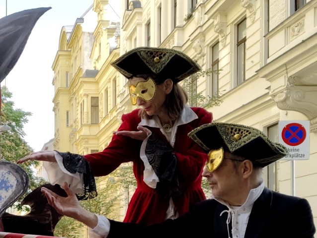Mit poetischen Texten, Melodien und Geräuschcollagen sind Evelyn Blumenau und Walter Kreuz in der Begegnungszone Josefsgasse/Lange Gasse (1080 Wien) unterwegs.